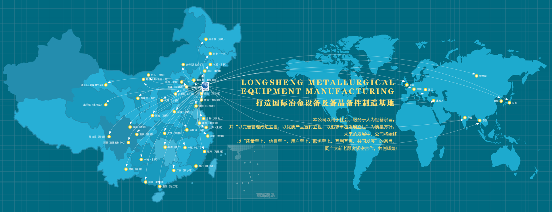 大连龙晟冶金设备制造有限公司是冶金设备辊子及备品备件加工制造、修复;结晶器总成研究及制造:金属部件表面强化、焊接新技术、新材料的开发:连铸设备扇形段专业化的生产制造的现代化企业,生产的产品广泛应用于冶金、矿山、机械、化工、港口、火力发电厂等行业,已覆盖国内各大钢铁企业,并出口到德国、日本、俄罗斯、波兰、土耳其、印度、美国、委内瑞拉、伊朗等国家和地区,简历了立足东北,辐射全国,展望世界的营销网络,近年来销售业绩均较上年有大幅度提高。